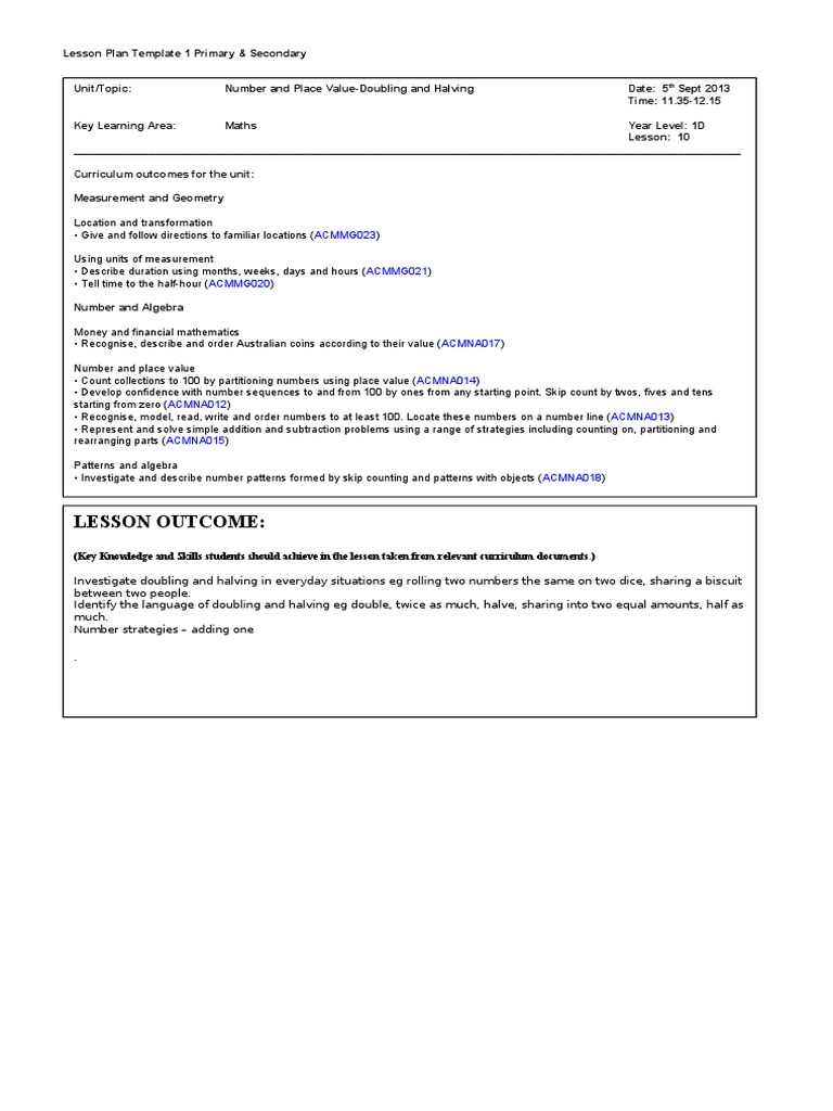 Teacher Math Lesson Doubling Halving Addition Subtraction