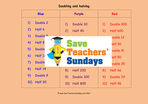 Ks1 Doubling And Halving Teaching Activities And Resources