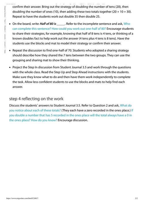 Stepping stones doubling and halving multiples of 10 and 5 published.