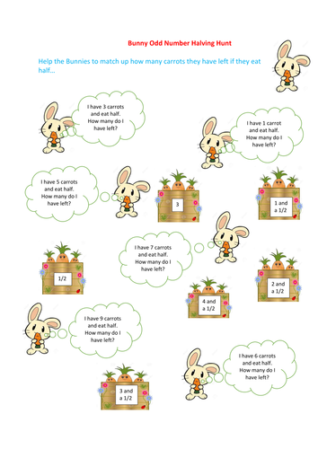 Halving odd numbers. Tes global ltd is registered in england company no 02017289 with its registered office at 26 red lion square london wc1r 4hq. So use the same method split 59 into 10 10 10 10 10 10 8 and 1. It includes a suggestion for halving numbers with odd tens. This website and its content is subject to our terms and conditions. We imagine that the numbers are all in baskets and that they can be split up into separate baskets. That happens maybe you can teach mom and dad too. Then half each number and add up the halved numbers. How to teach halving halving shapes before teaching a child to halve a number make sure that they can halve a shape. Hi for odd numbers the child needs to know what 12 of 1 is. Write out your multiples of ten and then write down your multiples of five below. Halving odd numbers odd numbers are not in the two times table and will not make a whole number when we halve them. An introduction showing how partitioning can be used to halve even and odd numbers. This way they can. 5 4 1 we halve the even number 4 to make 2. If the learners have a problem with halving an odd number let them use the following method.