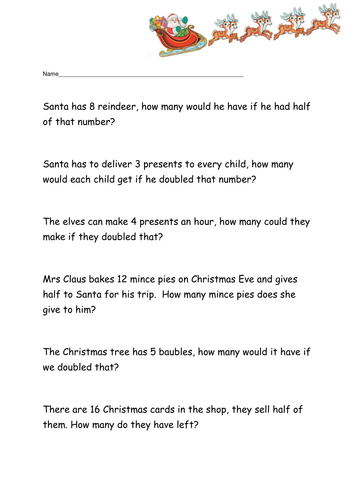 Christmas Maths Doubling And Halving Teaching Resources