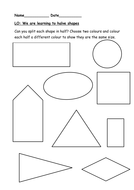 Colour In Half Of The Shapes Worksheet Teaching Resources