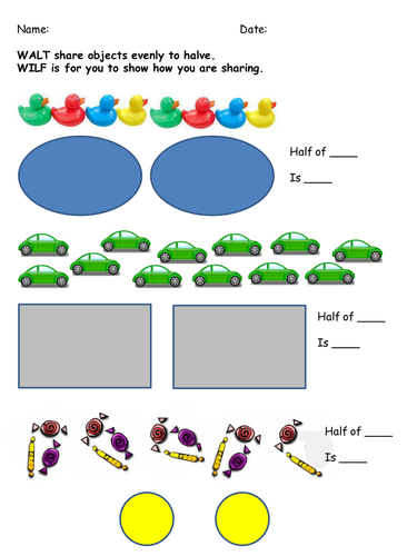 Halving Shapes Or Objects Year 1 Fractions Free Resource Pack